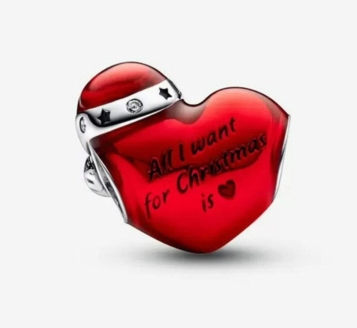 چارم قلب قرمز کریسمسی نقره پاندورا